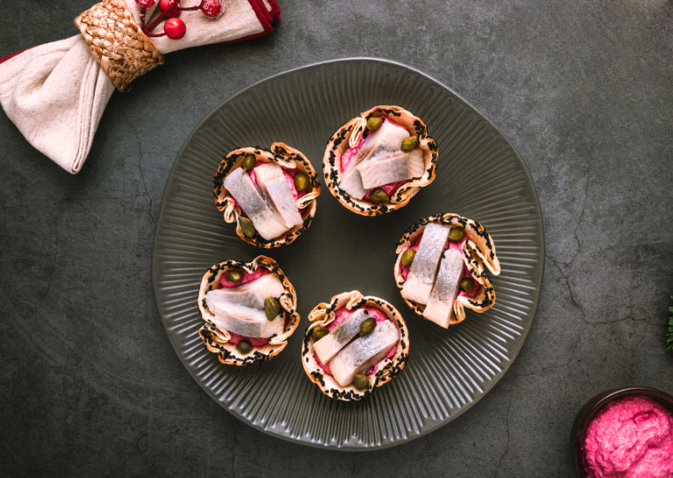 Krõbedad tortiljakorvikesed kreemise peedi-toorjuustukreemi ja hõrgu VIČI heeringaga on elegantne, kuid lihtsasti valmiv suupiste, mis toob lauale isuäratavad maitsed ja kauni pidulikkuse.