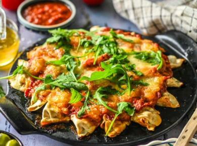 Tõsta ahjust välja, säti peale värsket rukolat ja serveeri kohe.