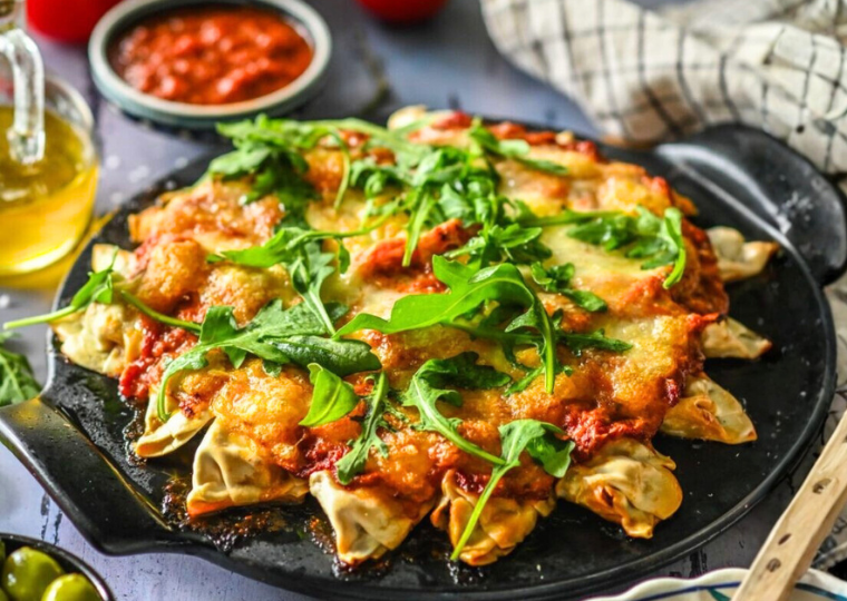 Küpseta ahjus 180-200 °C juures 15-20 minutit või seni, kuni pelmeenipitsa on pealt kuldne ja juust sulanud.